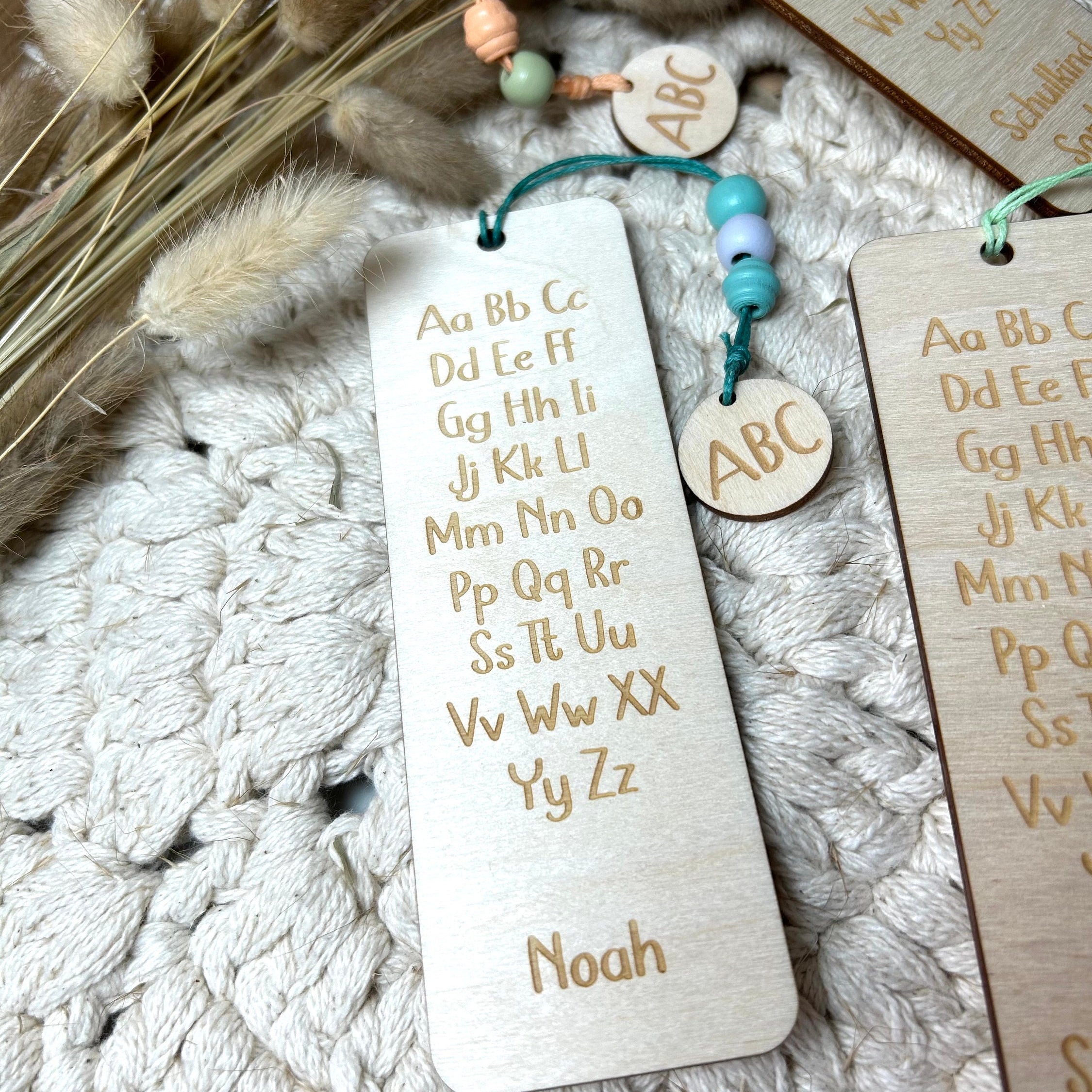 Lesezeichen | Motiv mit Name | mit Holzperlen und Anhänger