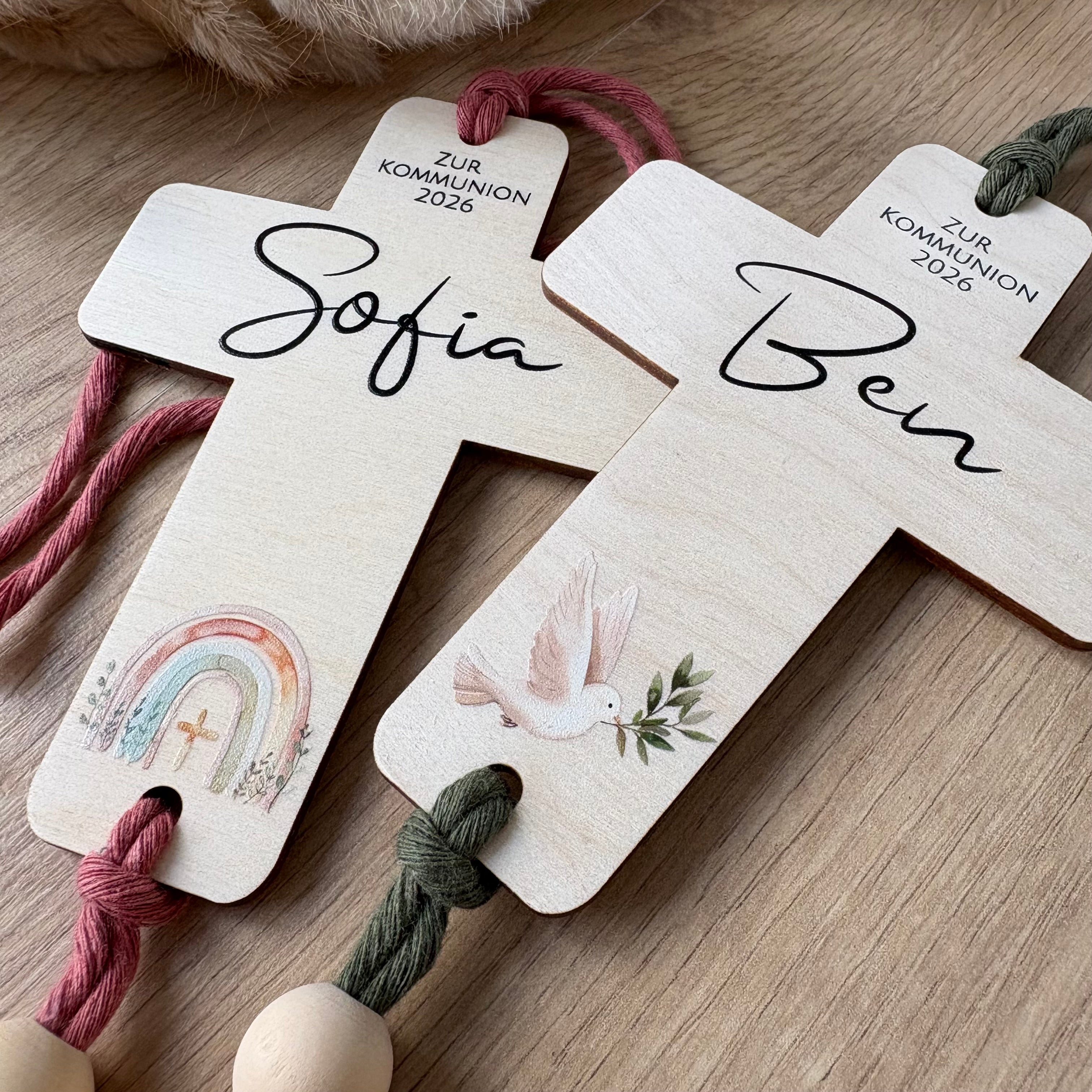 Kommunion Kreuz mit Name personalisiert | 35 Motive | Holz | Geschenkidee zur Kommunion