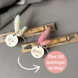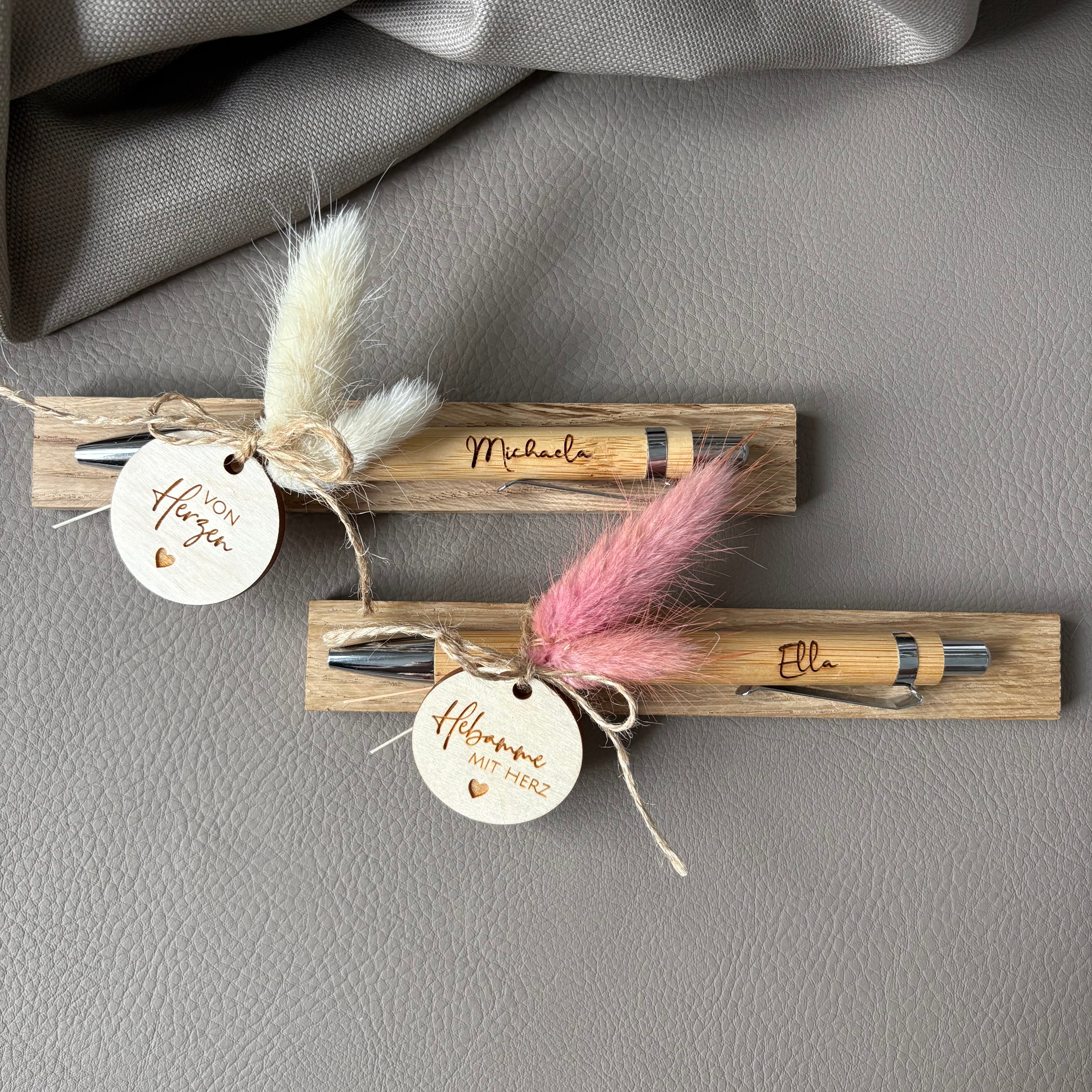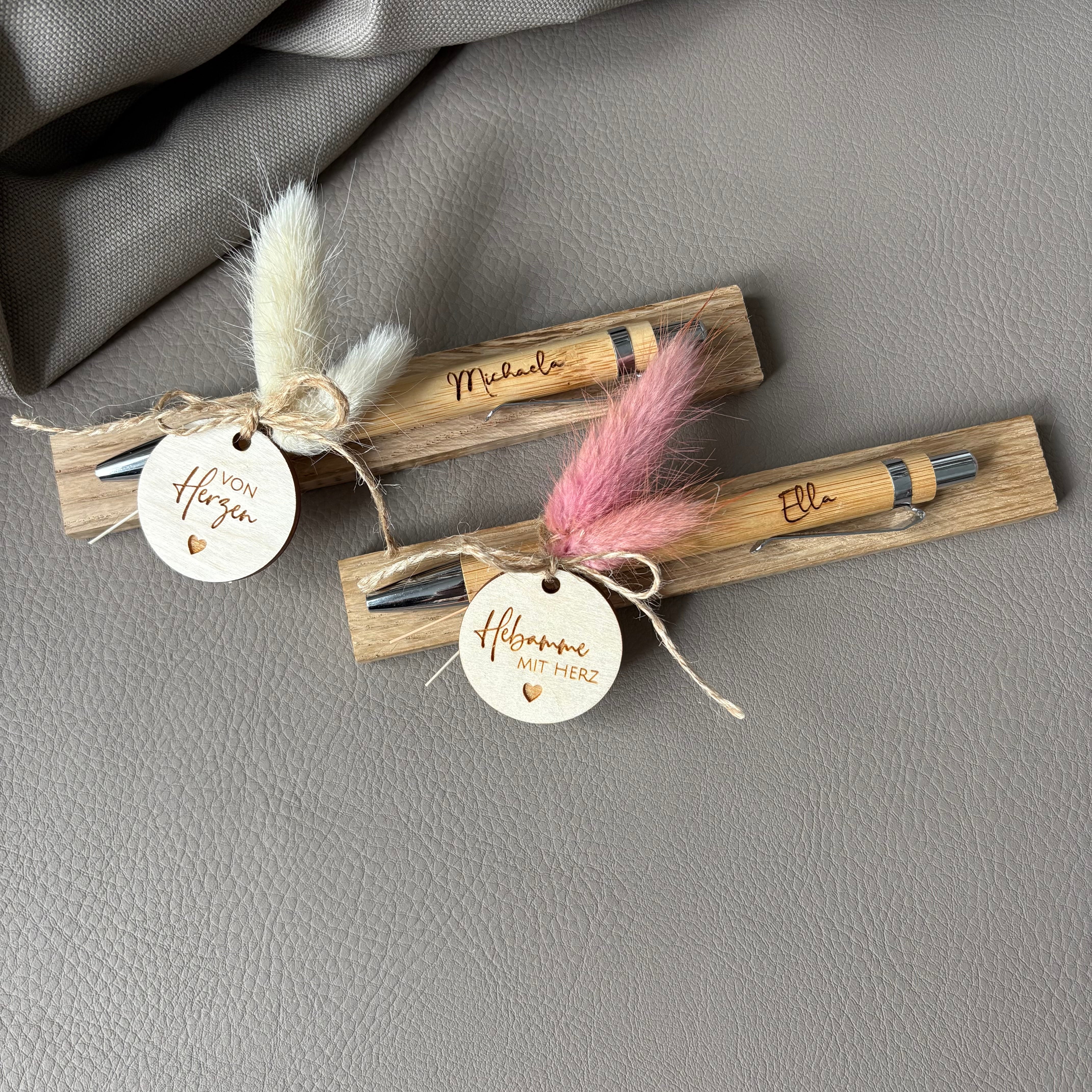 Dieses schöne Kugelschreiber-Set ist eine liebevolle WertschĂ€tzung fĂŒr Hebammen, die mit Herz und Hingabe begleiten â ideal als Dankeschön zur Geburt, zum Abschied oder einfach als kleine Aufmerksamkeit zwischendurch. Der Bambus-Kugelschreiber mit persönlicher Gravur wird mit einem zarten HolzanhĂ€nger, feinen Trockenblumen, einem hochwertigen Textilband und einem dekorativen HolzstĂŒck liebevoll arrangiert. Ein besonderes Geschenk, das von Herzen kommt und die unvergessliche UnterstĂŒtzung in einer ganz besonderen Lebensphase ehrt.