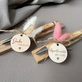 Dieses liebevoll gestaltete Kugelschreiber-Set ist ein besonderes Dankeschön für Physiotherapeutinnen und Physiotherapeuten, die täglich mit Herz, Geduld und Fachwissen Beweglichkeit zurück schenken und neue Wege eröffnen. Ob als kleine Aufmerksamkeit zum Praxisjubiläum, als wertschätzendes Abschiedsgeschenk oder einfach als Anerkennung zwischendurch – dieses Set bringt Dankbarkeit auf den Punkt. Der hochwertig gravierte Kugelschreiber aus nachhaltigem Holz wird zusammen mit einem dekorativen Holzanhänger, zarten Trockenblumen, einem feinen Textilband und einem rustikalen Holzstück stilvoll arrangiert. Ein Geschenk, das nicht nur praktisch ist, sondern auch symbolisch zeigt: Hinter jeder erfolgreichen Therapie steht ein Mensch mit Herz.