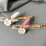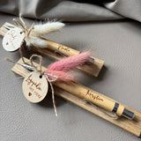 Dieses liebevoll gestaltete Kugelschreiber-Set ist ein besonderes Dankeschön für Logopäden und Logopädinnen, die mit Geduld, Einfühlungsvermögen und Fachwissen begleiten – perfekt als kleine Anerkennung zum Abschied, zum Praxisjubiläum oder einfach zwischendurch. Der gravierte Kugelschreiber aus nachhaltigem Bambus wird zusammen mit einem charmanten Holzanhänger, Trockenblumen, einem feinen Textilband und einem rustikalen Holzstück dekorativ arrangiert. Ein wertschätzendes Geschenk, das die wertvolle Arbeit und die Stimme hinter jedem Fortschritt würdigt.