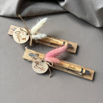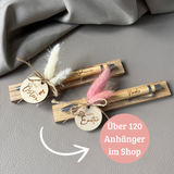 Dieses liebevoll zusammengestellte Kugelschreiber-Set ist ein besonderer OstergruĂ, der lange Freude bereitet. Der hochwertige Bambus-Kugelschreiber wird zusammen mit einem dekorativen Holzanhänger â wahlweise mit der Aufschrift âFrohe Osternâ oder âHappy Easterâ â geschmackvoll arrangiert. Ergänzt durch zarte Trockenblumen, ein farblich abgestimmtes Textilband und ein rustikales HolzstĂźck entsteht ein kleines Geschenk mit groĂer Wirkung. Ob als schĂśne Beigabe fĂźrs Osternest oder als herzliche Aufmerksamkeit fĂźr liebe Menschen â dieses Set bringt FrĂźhlingsgefĂźhle und ein Lächeln ins Gesicht.