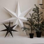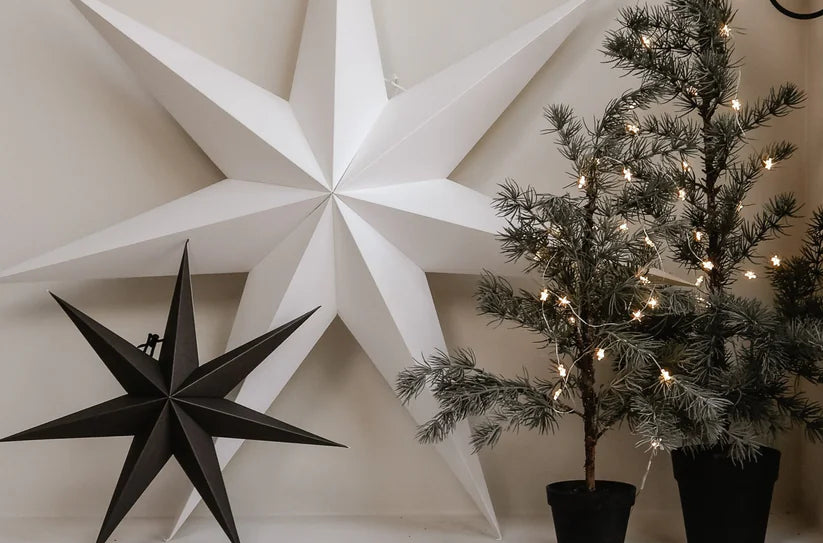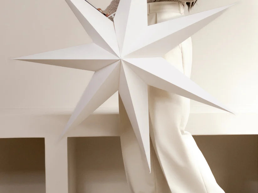 Unser Papierstern in der Größe 100 cm in Weiß ist ein eleganter Blickfang für die Advents- und Weihnachtszeit. Mit seinen sieben harmonisch geformten Zacken und dem hochwertigen, matten Papier verleiht er jedem Raum eine ruhige, stilvolle Ausstrahlung. Das schlichte, zeitlose Design fügt sich mühelos in verschiedenste Einrichtungsstile ein – von modern-minimalistisch bis hin zu klassisch und festlich. Besonders schön wirkt der Stern in Kombination mit weiteren Modellen: Im Shop ist er in verschiedenen Größen und Farben erhältlich, sodass sich ganz individuelle Arrangements gestalten lassen. Dank seiner durchdachten Konstruktion kann der Stern nach Weihnachten bequem zusammengefaltet und platzsparend verstaut werden – ideal für alle, die Wert auf langlebige, nachhaltige und stilvolle Weihnachtsdekoration legen. Ein hochwertiges Designobjekt, das Wärme, Harmonie und festliche Stimmung in Ihr Zuhause bringt – perfekt für eine besinnliche Adventszeit und ein stimmungsvolles Weihnachtsfest.