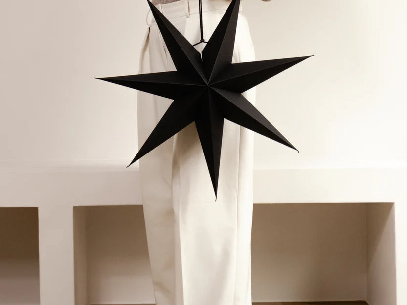 Unser Papierstern in der GrĂśĂe 60 cm in Schwarz ist ein eleganter Blickfang fĂźr die Advents- und Weihnachtszeit. Mit seinen sieben harmonisch geformten Zacken und dem hochwertigen, matten Papier verleiht er jedem Raum eine ruhige, stilvolle Ausstrahlung. Das schlichte, zeitlose Design fĂźgt sich mĂźhelos in verschiedenste Einrichtungsstile ein â von modern-minimalistisch bis hin zu klassisch und festlich. Besonders schĂśn wirkt der Stern in Kombination mit weiteren Modellen: Im Shop ist er in verschiedenen GrĂśĂen und Farben erhältlich, sodass sich ganz individuelle Arrangements gestalten lassen. Dank seiner durchdachten Konstruktion kann der Stern nach Weihnachten bequem zusammengefaltet und platzsparend verstaut werden â ideal fĂźr alle, die Wert auf langlebige, nachhaltige und stilvolle Weihnachtsdekoration legen. Ein hochwertiges Designobjekt, das Wärme, Harmonie und festliche Stimmung in Ihr Zuhause bringt â perfekt fĂźr eine besinnliche Adventszeit und ein stimmungsvolles Weihnachtsfest.