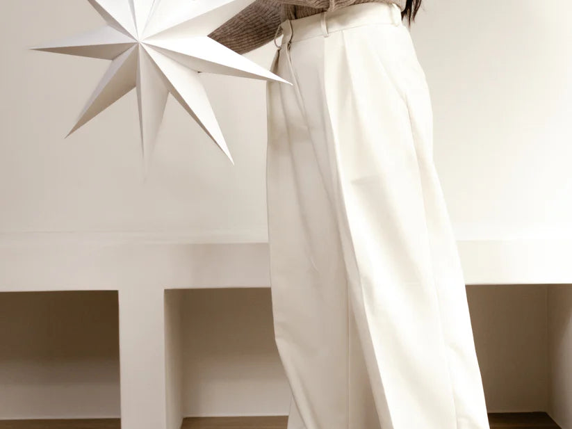 Unser Papierstern in der Größe 60 cm in Weiß ist ein eleganter Blickfang für die Advents- und Weihnachtszeit. Mit seinen neun harmonisch geformten Zacken und dem hochwertigen, matten Papier verleiht er jedem Raum eine ruhige, stilvolle Ausstrahlung. Das schlichte, zeitlose Design fügt sich mühelos in verschiedenste Einrichtungsstile ein – von modern-minimalistisch bis hin zu klassisch und festlich. Besonders schön wirkt der Stern in Kombination mit weiteren Modellen: Im Shop ist er in verschiedenen Größen und Farben erhältlich, sodass sich ganz individuelle Arrangements gestalten lassen. Dank seiner durchdachten Konstruktion kann der Stern nach Weihnachten bequem zusammengefaltet und platzsparend verstaut werden – ideal für alle, die Wert auf langlebige, nachhaltige und stilvolle Weihnachtsdekoration legen. Ein hochwertiges Designobjekt, das Wärme, Harmonie und festliche Stimmung in Ihr Zuhause bringt – perfekt für eine besinnliche Adventszeit und ein stimmungsvolles Weihnachtsfest.