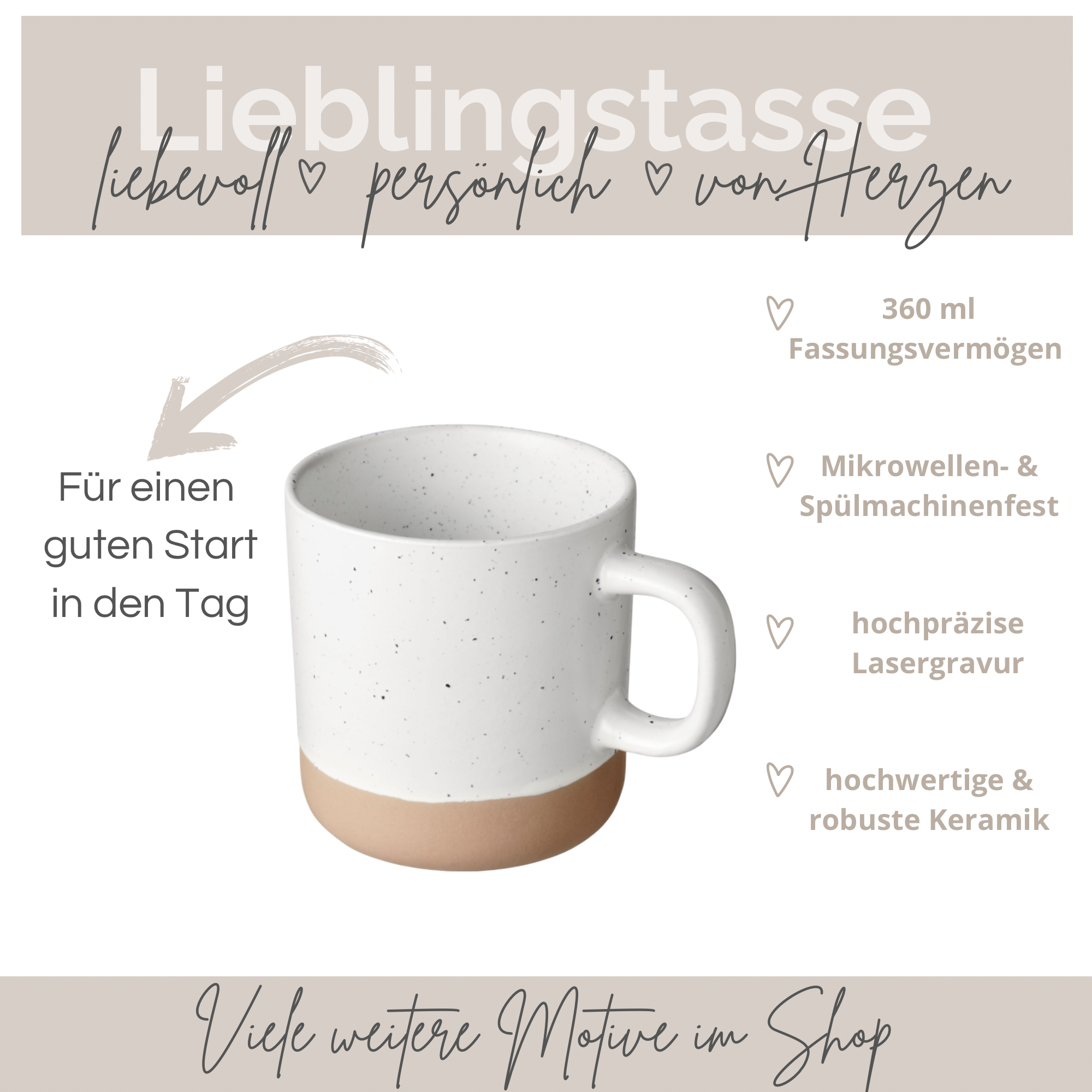 Die Tassen sind spĂźlmaschinenfest und mikrowellengeeignet. Da jede Gravur individuell gefertigt wird, kĂśnnen leichte Abweichungen im Design auftreten, was jede Tasse zu einem besonderen Unikat macht.