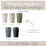 Die Thermobecher sind spülmaschinenfest. Da jede Gravur individuell gefertigt wird, können leichte Abweichungen im Design auftreten, was jeden Thermobecher zu einem besonderen Unikat macht.