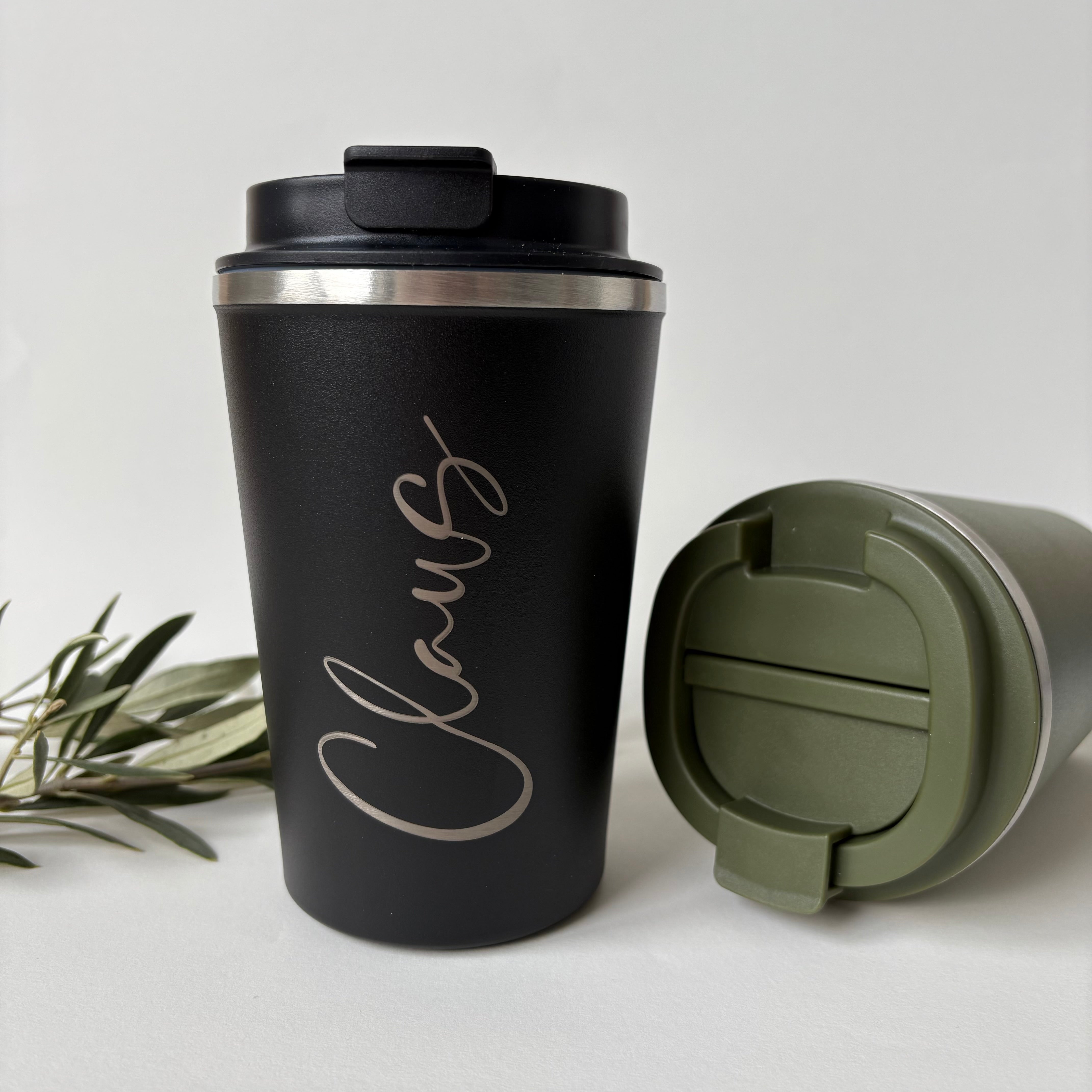 Die Thermobecher sind spĂźlmaschinenfest. Da jede Gravur individuell gefertigt wird, kĂśnnen leichte Abweichungen im Design auftreten, was jeden Thermobecher zu einem besonderen Unikat macht.