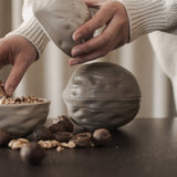 Unsere Walnut Bowl aus hochwertiger Keramik vereint Funktionalität und Ästhetik auf einzigartige Weise. Die formschöne Schale lässt sich öffnen und bietet Platz für Nüsse, Süßigkeiten oder andere Kleinigkeiten. Ihr detailreiches Design in Form einer Walnuss macht sie zu einer außergewöhnlichen Dekoration und einem echten Blickfang. Ob als stilvolles Accessoire, praktischer Helfer oder besondere Geschenkidee – die Walnut Bowl passt sich mühelos jeder Einrichtung an und sorgt für einen Hauch skandinavischer Eleganz.